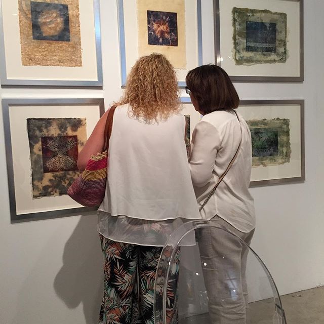 María Cristina de la Vega,explicando la técnica del grabado solar a coleccionistas |